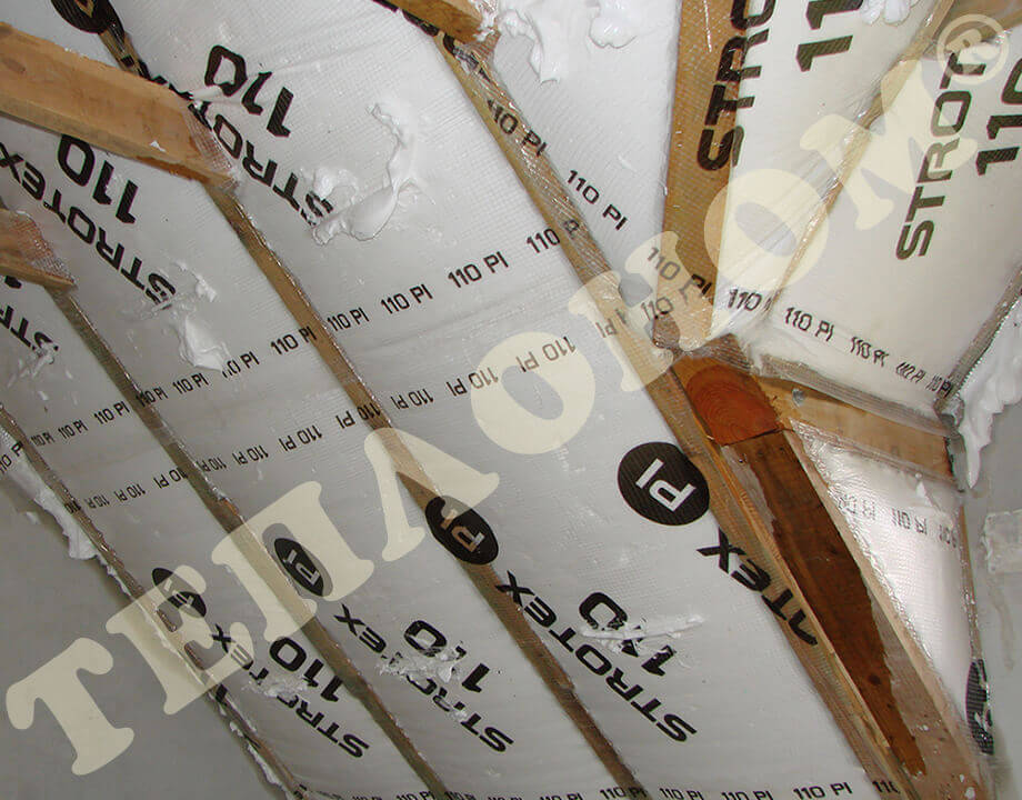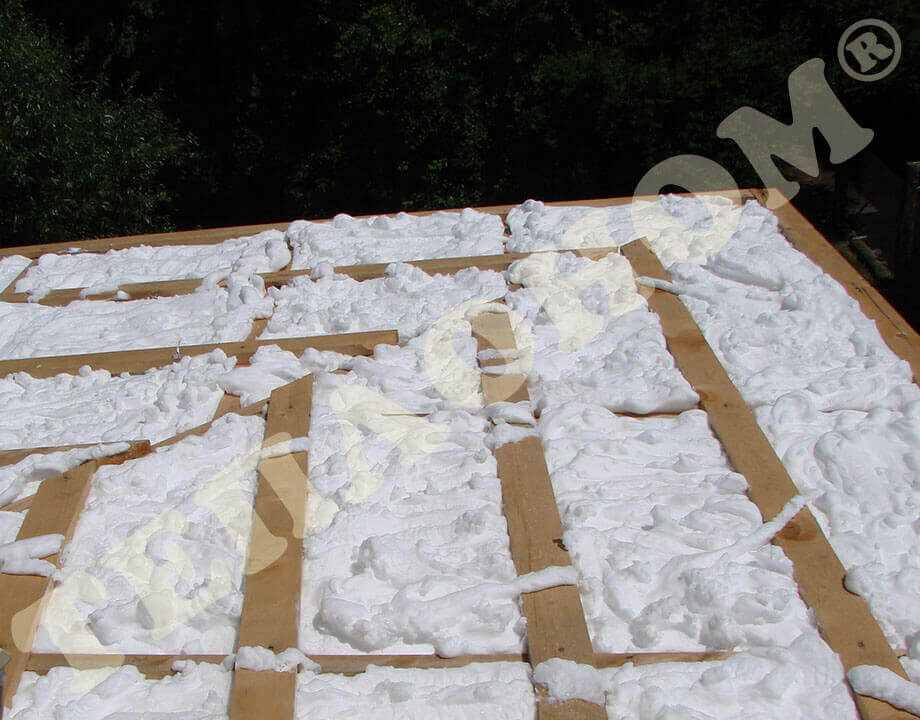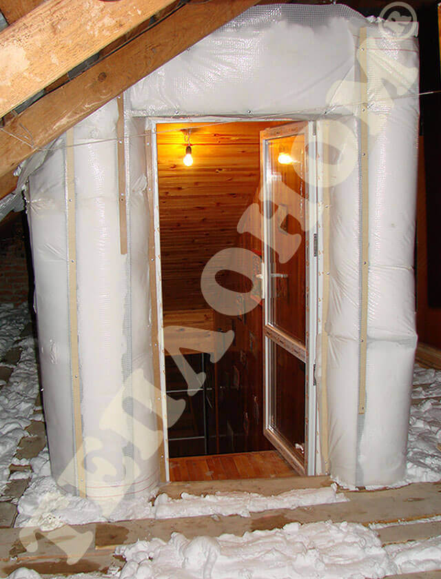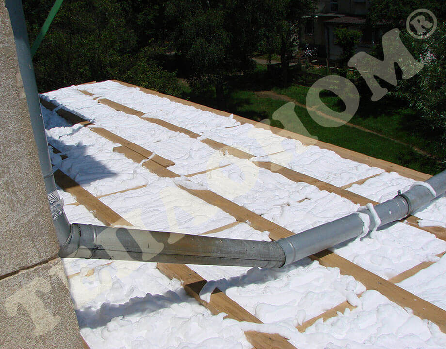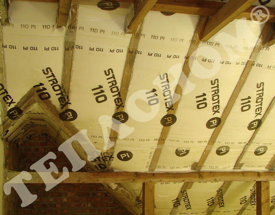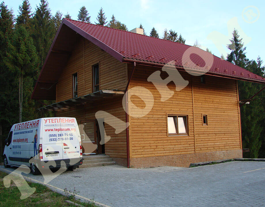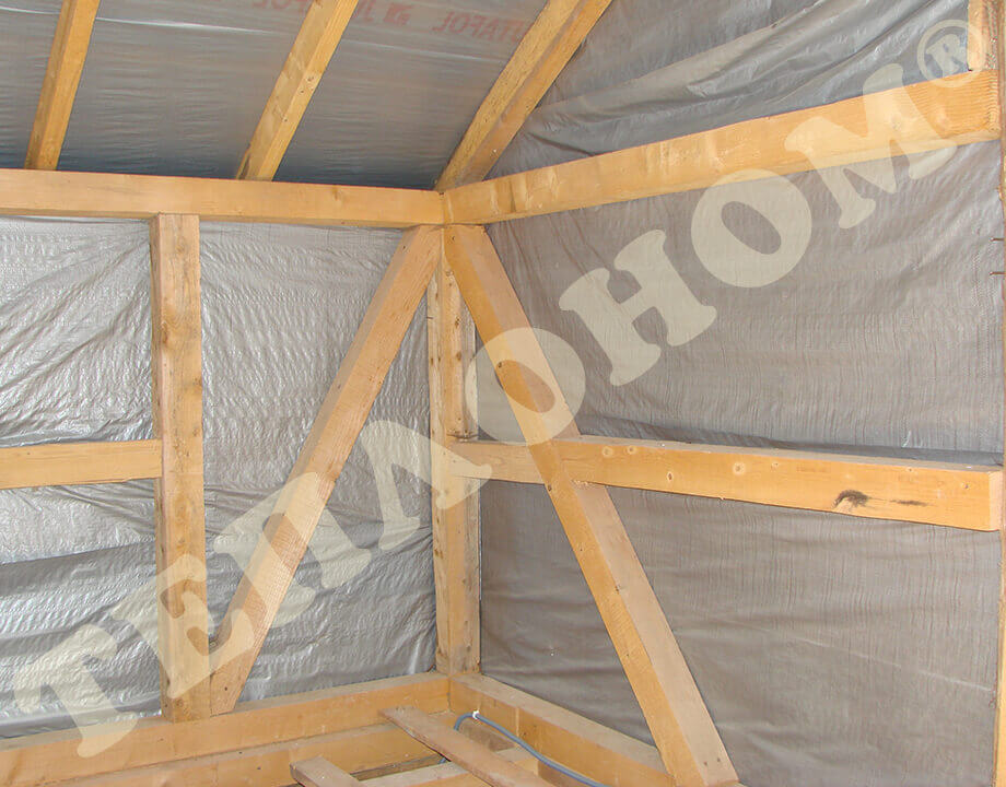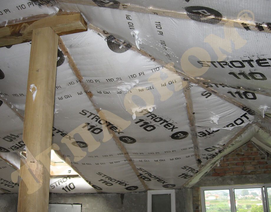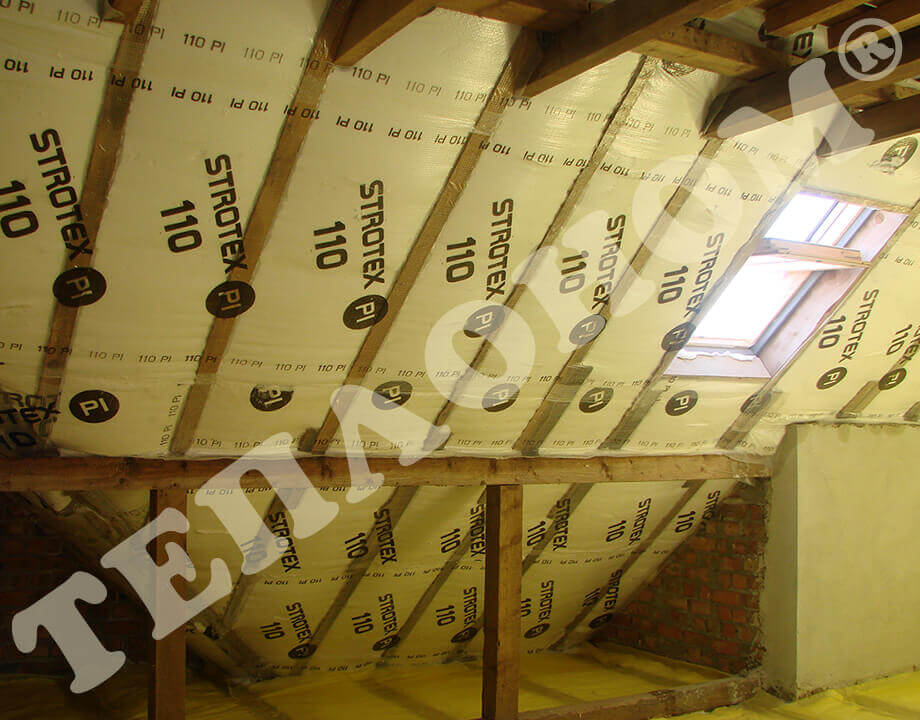 На фотографиях показано утепления предприятием ТЕПЛОНОМ® мансарды (крыши) между стропилами заливным пенопластом экоизол. утепление выполняется за армированную пленку паробарьер. В данном случае это: strotex 110 PI или strotex 90 AL (фольгированный). Утепление выполняется под давлением, что позволяет заполнить все щели и уменьшает технологическую усадку материала.