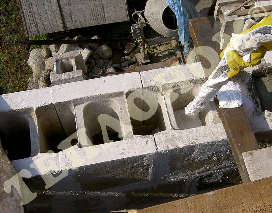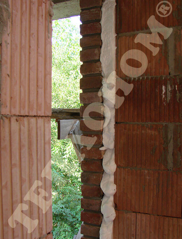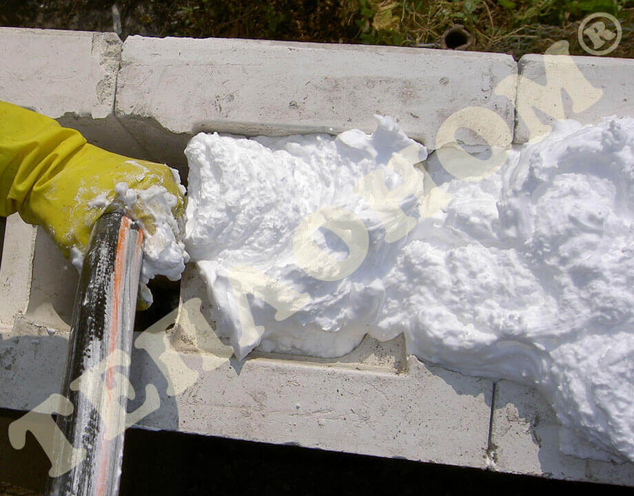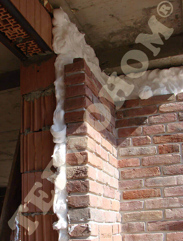 На фотографиях можно увидеть утепление предприятием ТЕПЛОНОМ® стен заливным пенопластом экоизол, а именно утепление колодезной кладки в процессе строительства дома. В данном случае утепления проводилось при возведении стен первого этажа, ширина пустот 7 см, что позволило опускать заливной рукав сверху вниз на глубину 3 м.